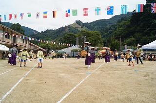 大河内小学校の運動会では、臼太鼓踊りを披露します。