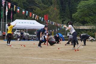 保護者・職員団技。玉入れ、綱引きも真剣です。