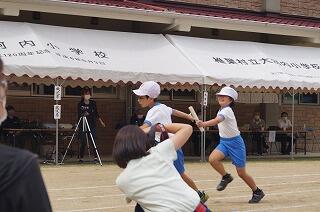 全校リレーの練習もしました。本番は華麗なるバトンパスで