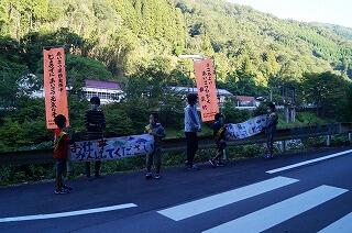 団長のかけ声をもと、決まったスローガンをみんなで元気よく