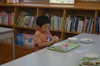 1年生の表情に注目して下さい。表情だけみれば、おにぎりを