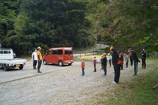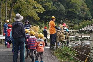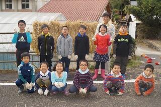 掛け干しした稲の前で講師の方も一緒に記念撮影。