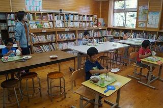 1年生の表情に注目して下さい。表情だけみれば、おにぎりを