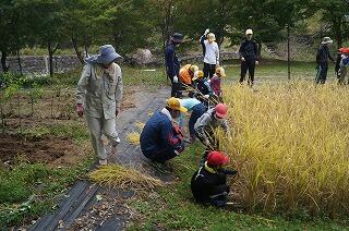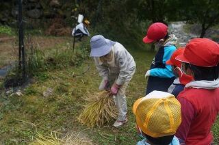 今回は、稲刈りグループと稲を束ねるグループに分かれて