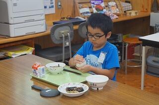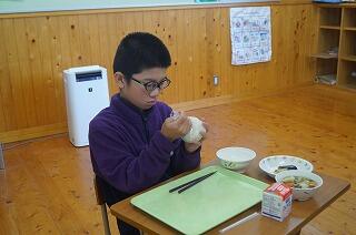 1年生の表情に注目して下さい。表情だけみれば、おにぎりを