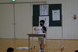 陸上大会で頑張ったことをみんなに紹介しました。