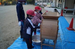 自分たちで唐箕の操作にチャレンジです。