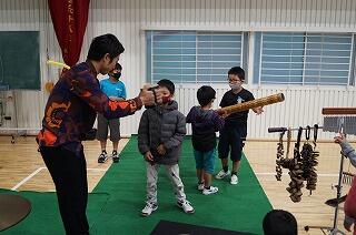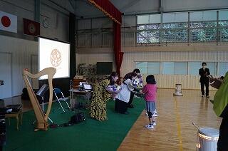 楽器を実際に触らせてもらいました。子どもたちも大喜び