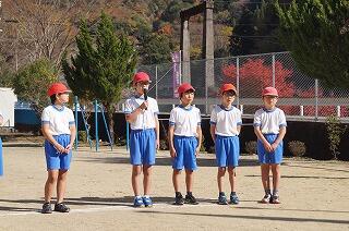 まずは、1・2年生。自分の目標を発表して、元気よく
