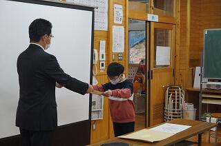 今回の終業式は、新型コロナ感染拡大予防対策と寒さ対策で