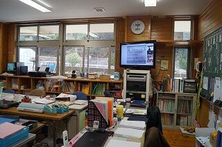 職員室でも見られるようにしたので、事務の先生も終業式の