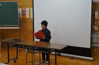 児童代表の作文発表。三学期の目標を堂々と発表できました。