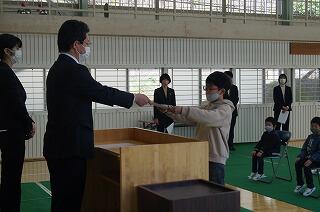 3月で大河内小学校から転校する友だちの皆勤賞の表彰を