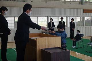 作文発表の後、校長先生から一人一人に修了書授与が行われました。