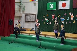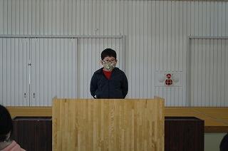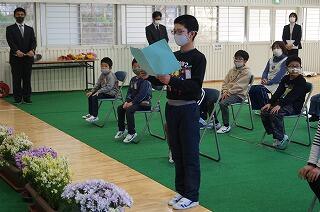 代表児童の作文発表。1年間を振り返って、自分の成長した