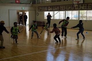 お弁当やおやつを食べた後は、体育館で子どもたちが考えた