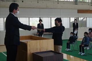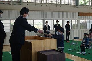 作文発表の後、校長先生から一人一人に修了書授与が行われました。