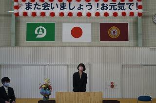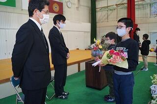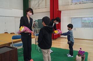花束贈呈。子どもたちからも一言添えて渡していました。