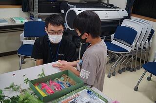 夕食の後は、演習林の方が準備して下さった、植物等でしおり