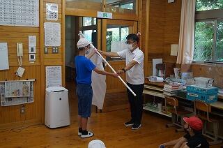 当初は、体育館で行う予定でしたが、窓を開けて、2台の