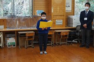 3名の代表児童が、2学期を振り返っての作文発表を行いました。
