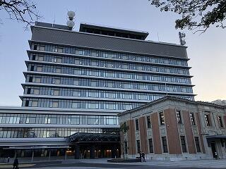 ゴールは、新しくできた県庁前の総合防災庁舎です。