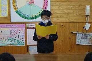 代表児童3名が、3学期の目標や新年を迎えての抱負を発表