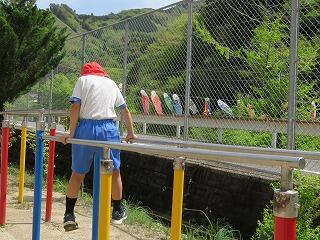 うんてい。3年生がヒョイヒョイと軽やかに渡りきりました。