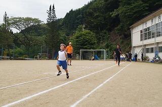 次は50メートル走。スポーツ少年団で練習しているフォームを意識して走ります。