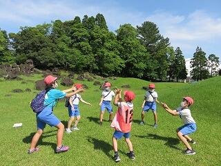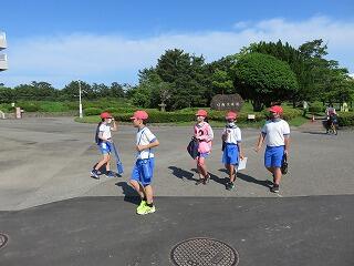 運動公園はとても広く、活動全体で5㎞ほど歩きました。それでもいろんな話をして楽しさの方が大きいです。チームワークが高まります。