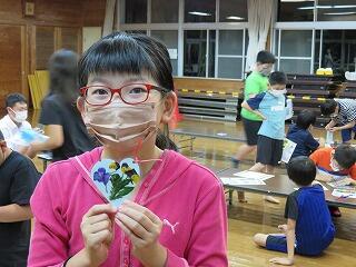 夕食後は、押し花を使ったしおりづくりをしました。しおりづくりの前に、指導員の方から、自然の家の近くの海岸にやってくるアカウミガメの話を聞きました。