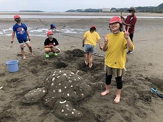 午後の活動は、砂の造形です。はだしで駆け回りながら作りました。
