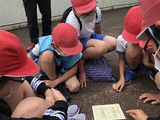 イモムシは逃がすことにしました。どこに逃がすのがいいか、熱心に話し合います。