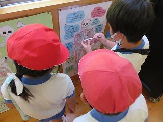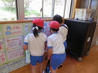 保健室の先生が、子どもたちがワクワクするような掲示物をつくっています。