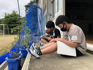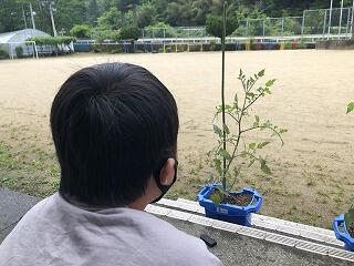 「かんさつ名人になろう」という学習をしています。自分で植えたミニトマトを観察して、観察日記を書きます。