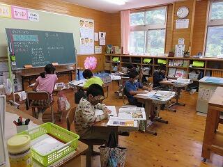 先生が3年生と学習している間、4年生は先生から出された課題に取り組みます。