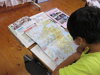 課題が終わったら、自分たちでできる学習をします。いま取り組んでいるのは「宮崎県の地名さがし」。