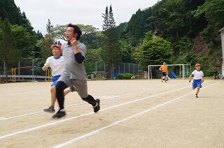 子どもの後は、お家の方々。さすがに迫力が違います。運動場のはしっこまで飛んでいきました。