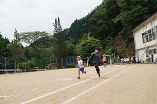 次は50メートル走。スポーツ少年団で練習しているフォームを意識して走ります。