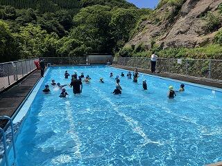 3年生は水泳。椎葉小のプールは広いです。そして、暑い!
