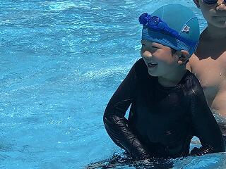 先生や校長先生のアドバイスのおかげで、きれいに泳げるようになりました。プール納会では10m、クロールで泳げました。来年こそは、25m泳ぎたいです。