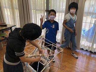 先輩たちがしているのを見ながら「楽しそうだなあー。うらやましいなあー。」という思いを2年間温めてきた、クラブ活動新入生の3年生がリクエストした活動です。