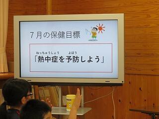 熱中症予防について、子どもが自分自身で気をつけることの確認をしました。