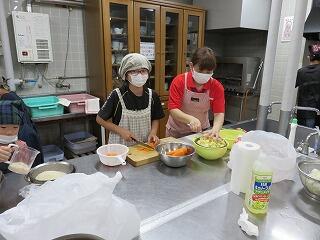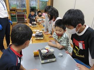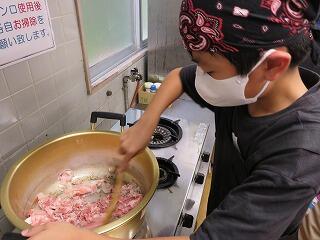 夕食作りスタート!メニューはカレーライス。調理実習を経験している5・6年生が、切って炒めます。