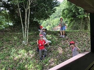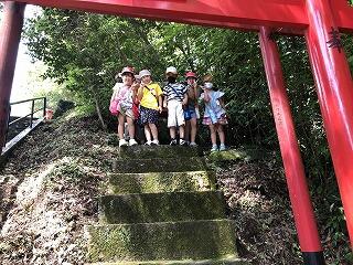 神社のまわりを探検します。だんだん打ち解けて、話も弾んできます。