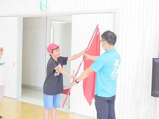 赤、白が決まり、校長先生から団旗をもらいました。気分が高まります。