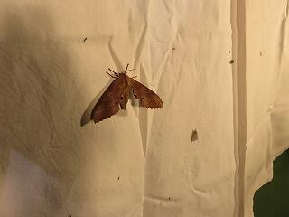 スズメガの一種のようです。大きい!大きいですがおとなしいので、手に登らせて楽しみました。