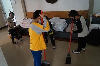 ベッドや部屋の片付けをして、そうじもします。来たときよりも美しく。
