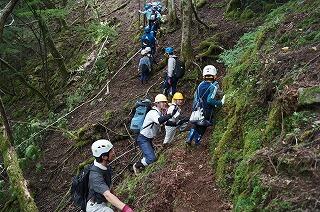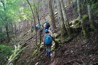 途中にはきれいな沢もありました。演習林の方が渡してくださった橋がわりの板も渡りました。