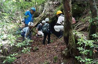 目的地に到着。集落跡は平らで開けていました。昭和14年頃に銅山が閉山されるまでは、数百人の方が暮らしていたそうです。